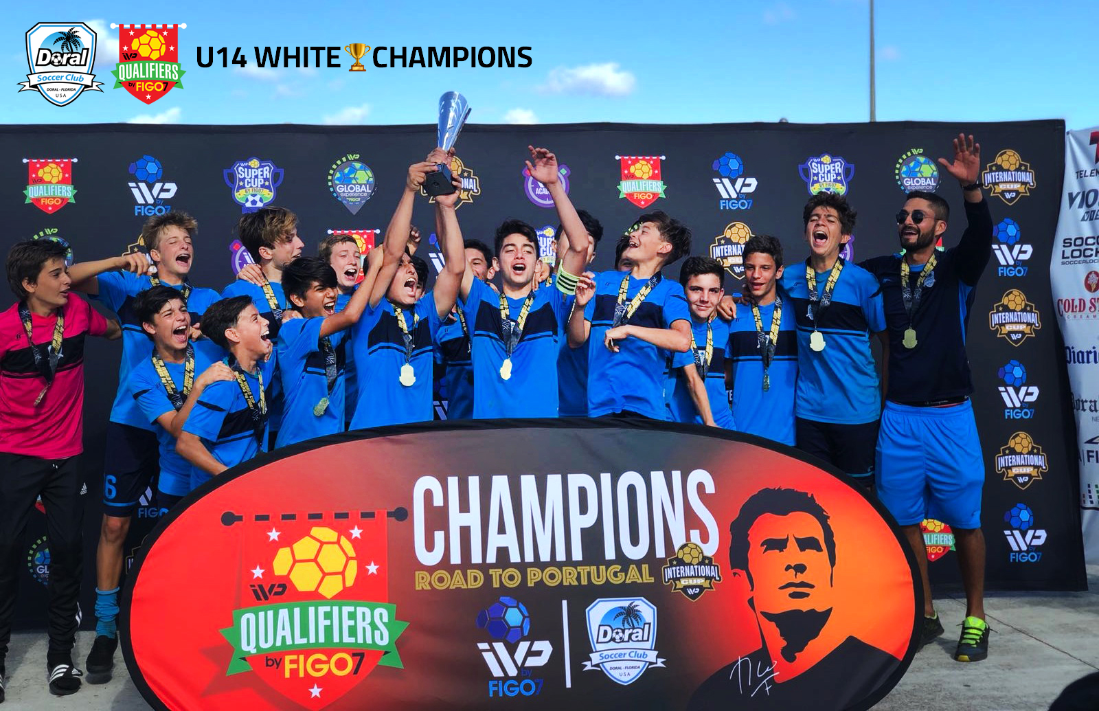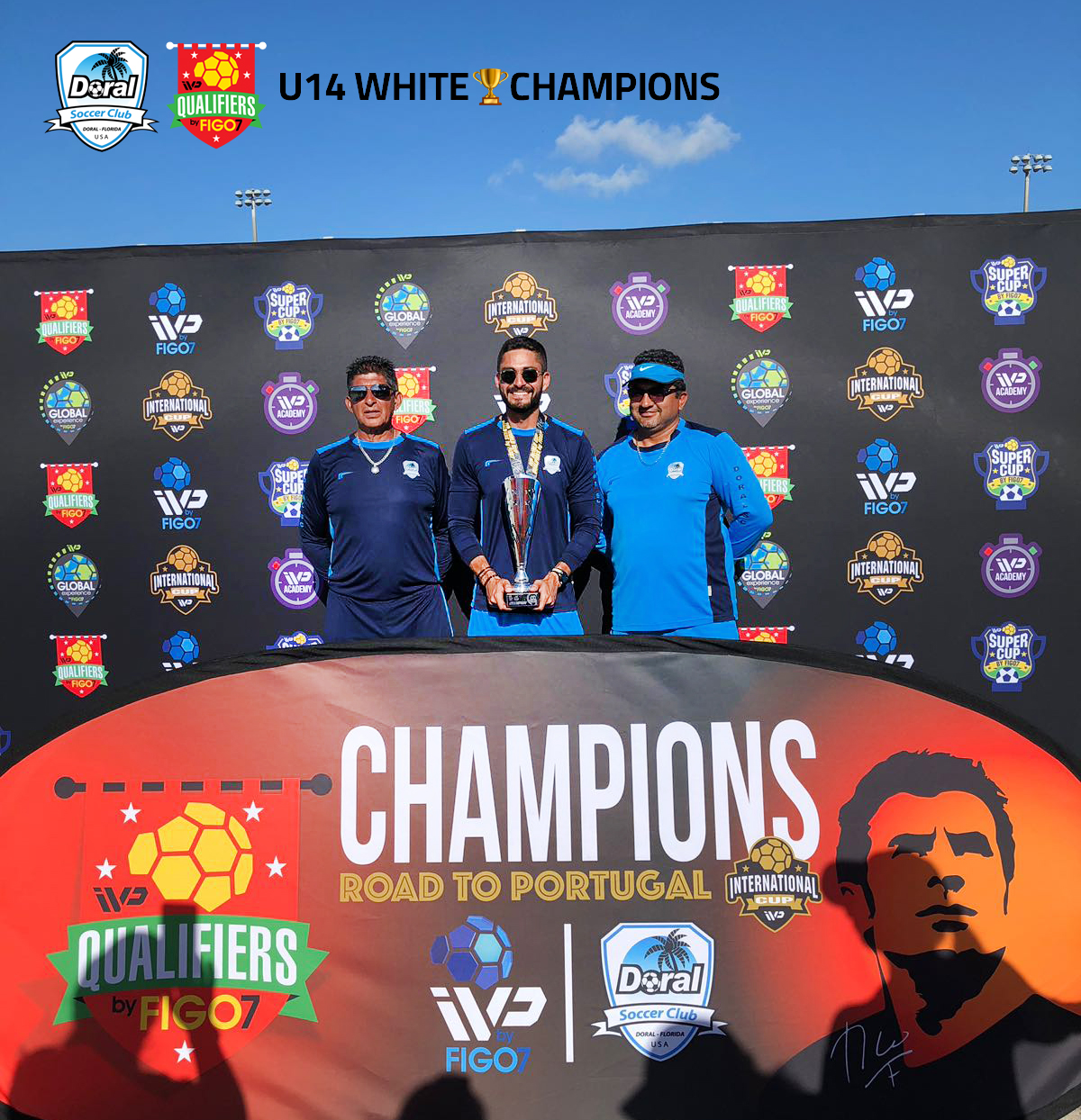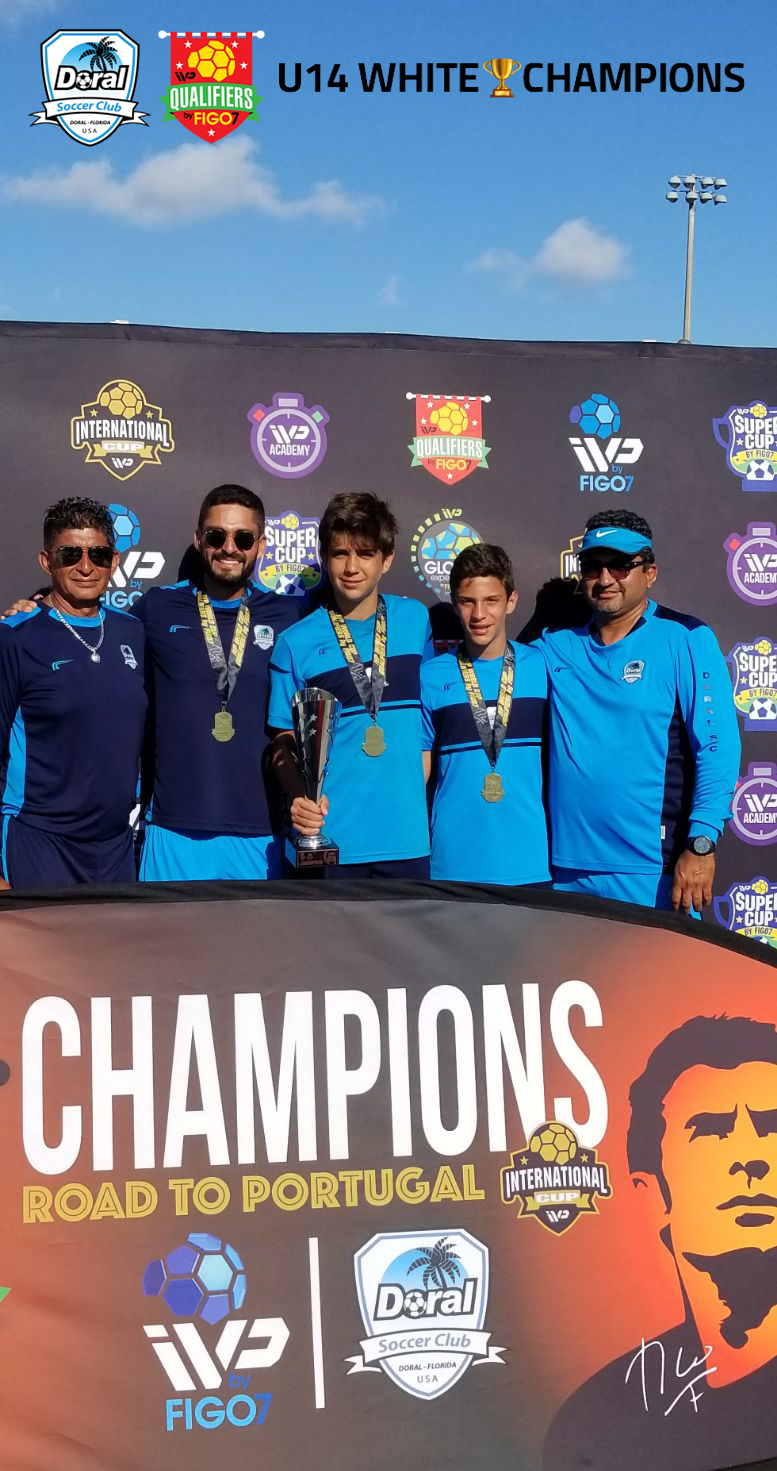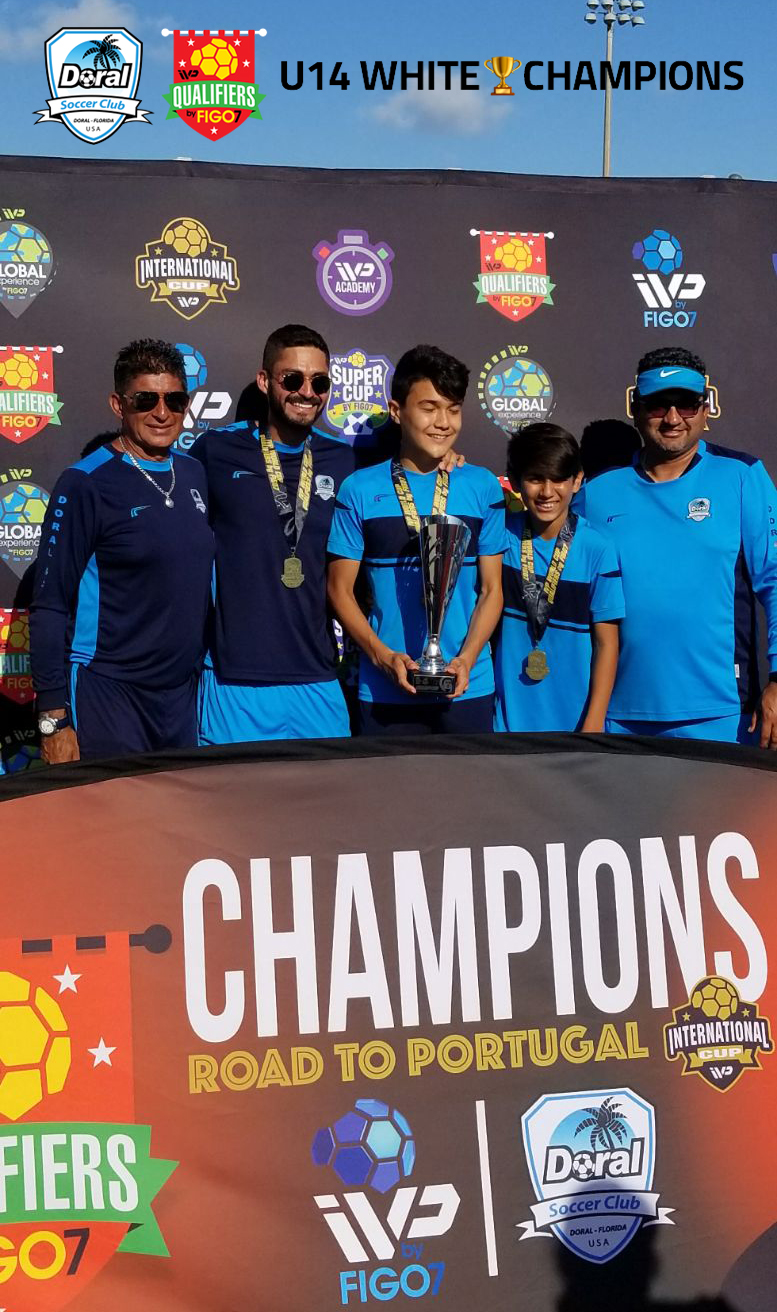 With great honor we would like to share the victory of our U14 White team at the IVP By Figo7 tournament played at Amelia Earth Park on March 31 / April 1, 2018 where our U14 placed champion and the prize for wining this tournament will be to travel to Portugal with all the expenses paid and represent in its division the United States and our City of Doral in the IVP international Cup Portugal this summer July 1/9, 2018.